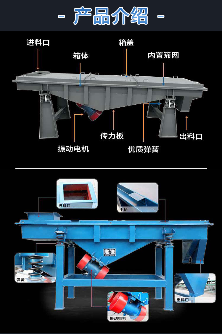 直線振動篩是利用振動電機使物料在篩網上做定向拋物線運動,通過多層篩網可產生不同規格的物料,具有高產低耗、自動卸料等特點,適合流水線作業。
